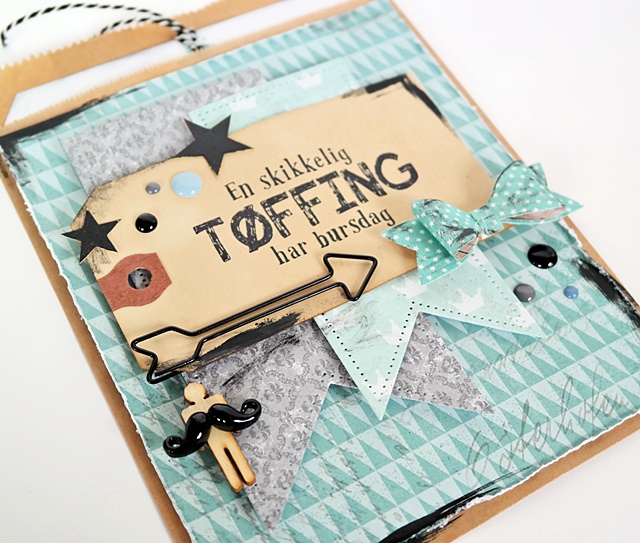 Posekortet måler 5x6", og jeg har pyntet kortet med tøffe mønsterark fra Papirdesign.